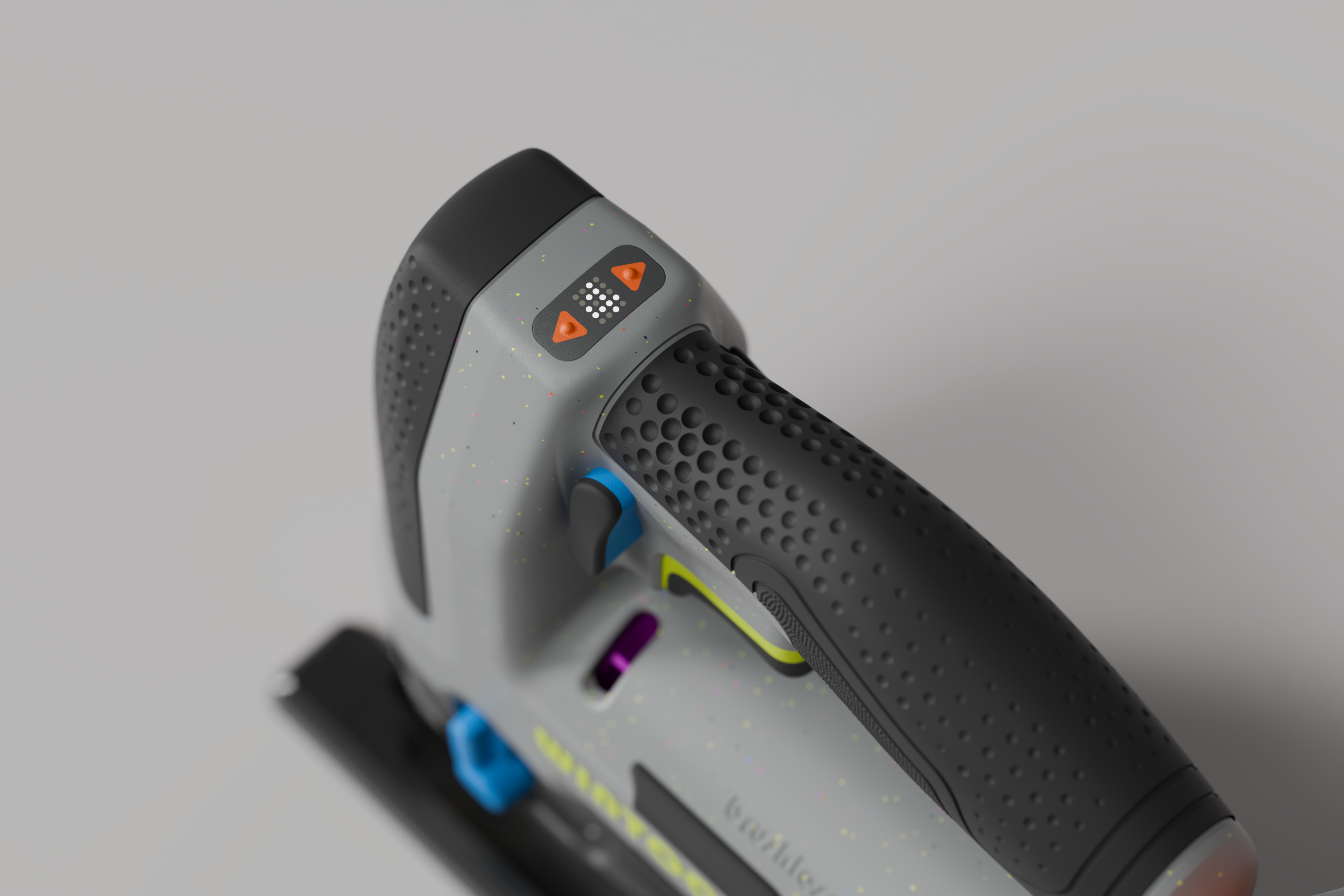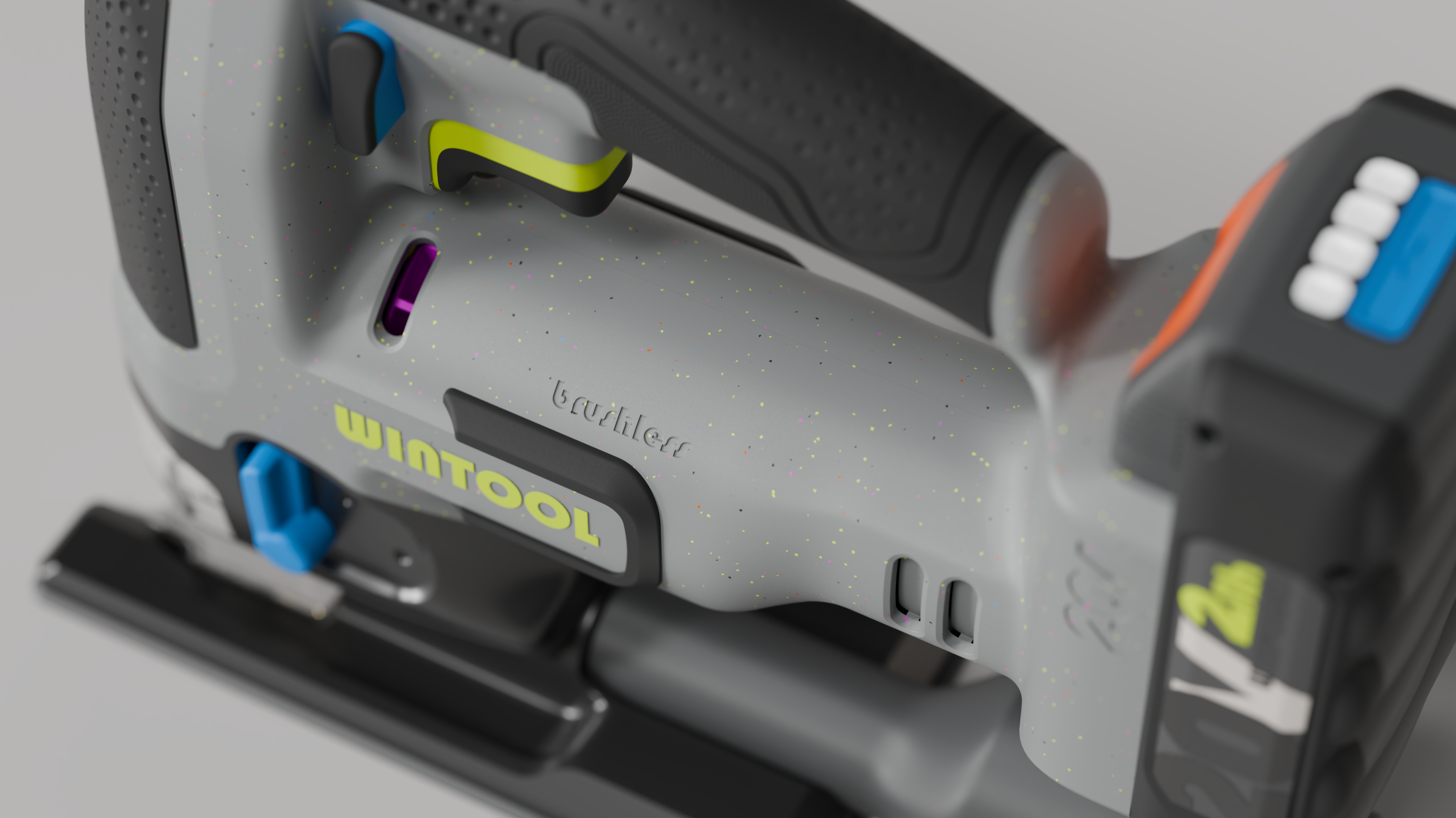 Sustainability is a key focus in this series, with eco-friendly materials used throughout the design. The light gray housing features recycled elements, and the colorful accents subtly highlight the tools’ sustainable design. By choosing materials that are both durable and responsible, I’ve created a product that performs well while also being mindful of the environment. This approach ensures that the design is modern, relevant, and aligned with today’s values.